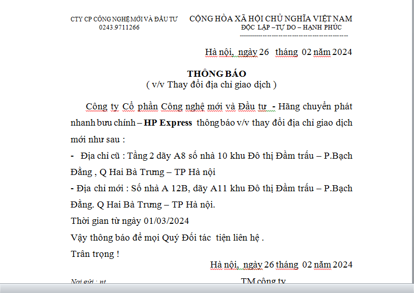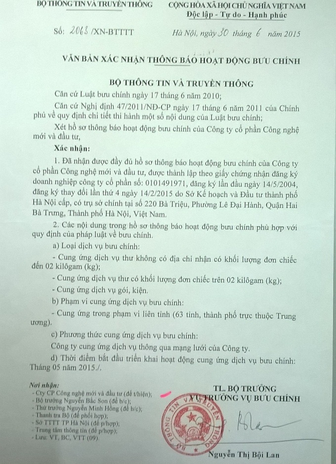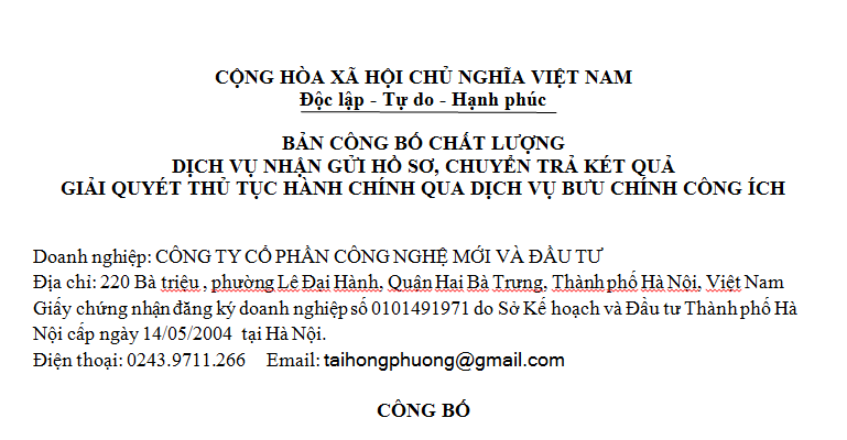 CÔNG TY CP CÔ NGHỆ MỚI VÀ ĐẦU TƯ
