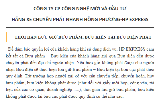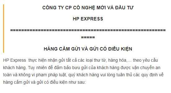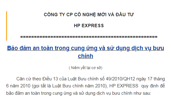Căn cứ theo Điều 13 của Luật Bưu chính số 49/2010/QH12 ngày 17 tháng 6 năm 2010 (gọi tắt là Luật Bưu chính năm 2010), HP EXPRESS quy định để bảo đảm an toàn trong cung ứng và sử dụng dịch vụ bưu chính như sau: